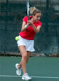 In the bottom half of the singles, Sadovskaya earned the win over Amanda El-Toby (6-1, 6-1), Shepherd downed Veronika Gerka (6-1, 6-2) and senior Aimee Charest (Somerst, Mass.) topped Iva Gyergina, 6-4, 3-0, before an injury forced them to retire. Finally, in the No. 8 singles, Stiekema won in a third set (7-5, 4-6, 10-8) over Jennifer Seide.