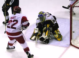 On Sunday, Union once again opened the scoring with a power-play goal, taking a 1-0 lead at 12:56 in the second period. Sophomore Erin Seman tied the game for BU at 18:26 and the teams entered the third period knotted at 1-1. The Dutchwomen scored 14 seconds into the third period to gain their second lead, but BU responded with three consecutive goals to seal the win. Freshman Melissa Haber made 16 saves in the game to notch her third win on the year.