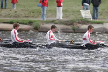 Finally, the varsity four-plus race will be conducted differently than the other four events. This race will be a time trial beginning at 12:36 p.m., with crews finishing in places 1-12 going to the "A" and "B" semifinals and the Petite or Grand Finals. Crews finishing in places 13-24 will advance to the "A" and "B" semis and the Third or Fourth Level finals. Places 25-30 will go to the "E" Final, while places 31-36 will be sent to the "F" Final. BU's boat is composed of bow Harrison Macris, Matt Trevithick, Chris Klotzbach, stroke Justin Martin and cox Marty Yates.