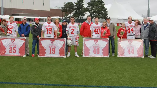 BU honored its four seniors prior to the opening faceoff. Elliott Burr, Patrick Donnelly, Alex Paroda and Sam Tenney will graduate next weekend after three seasons with the program.