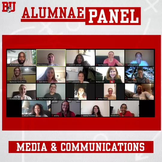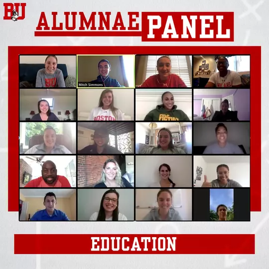 Head coach Marisa Moseley (CAS’04): “This summer’s alumnae panels were a fantastic opportunity for our current team and former Terriers to connect. It illuminated the need for cross-generational interactions more than ever at a time like this. I am grateful to our incredible alumnae who took the time to meet and share with our team their experiences and expertise. This program epitomizes our mantra of ‘once a Terrier, always a Terrier’.”